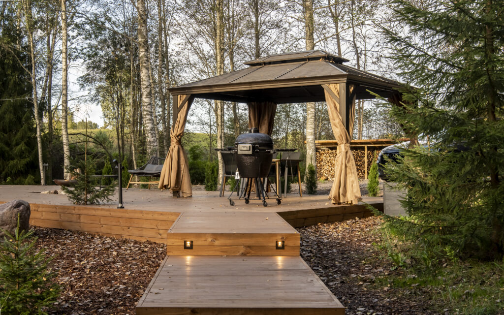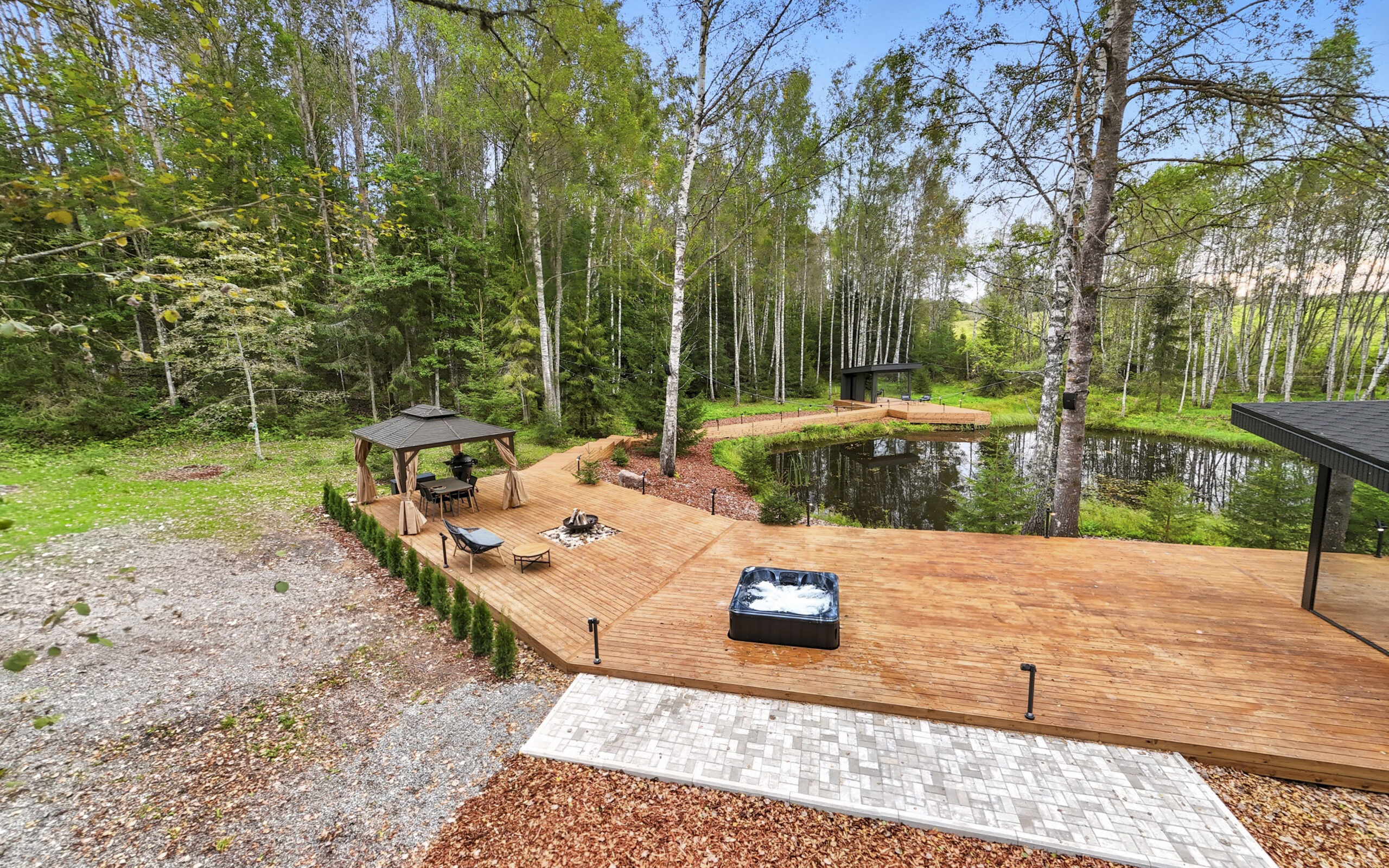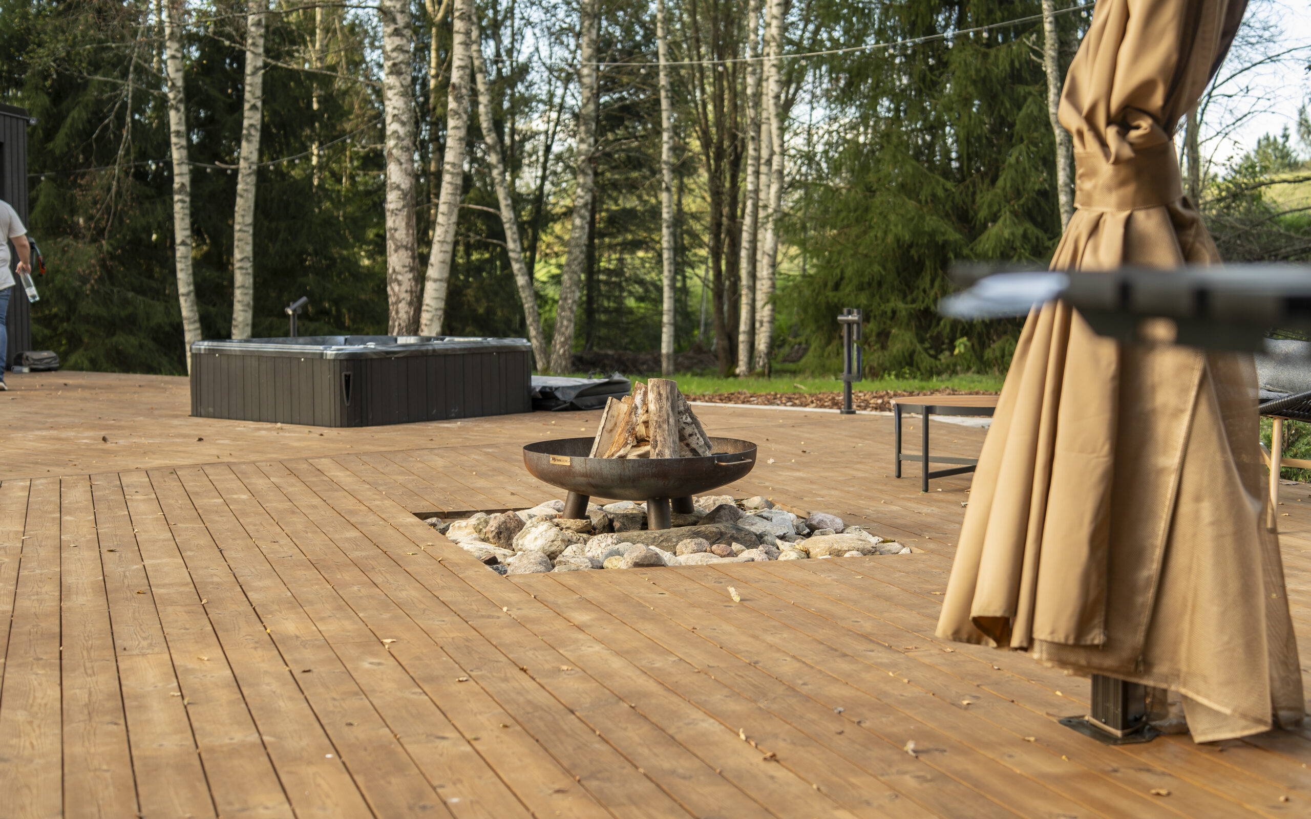 Meie majutus pakub võimalust kogeda tõelist mõnusat puhkust värskes õhus – lõõgastudes terrassivannis ja nautides grillimise rõõme. Suurel terrassil asuv kümblustünn on ideaalne koht, kus aeg maha võtta ja lasta soojal veel keha ning meelt hellitada. Olgu see päikeseloojang tiigi kohal või tähine õhtu, terrassivannis veedetud hetk loob unustamatu elamuse.