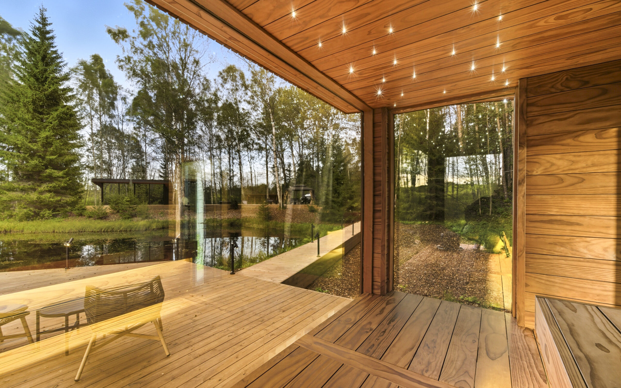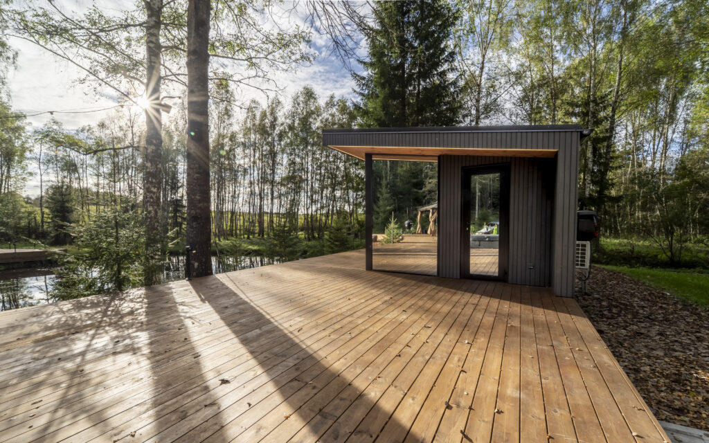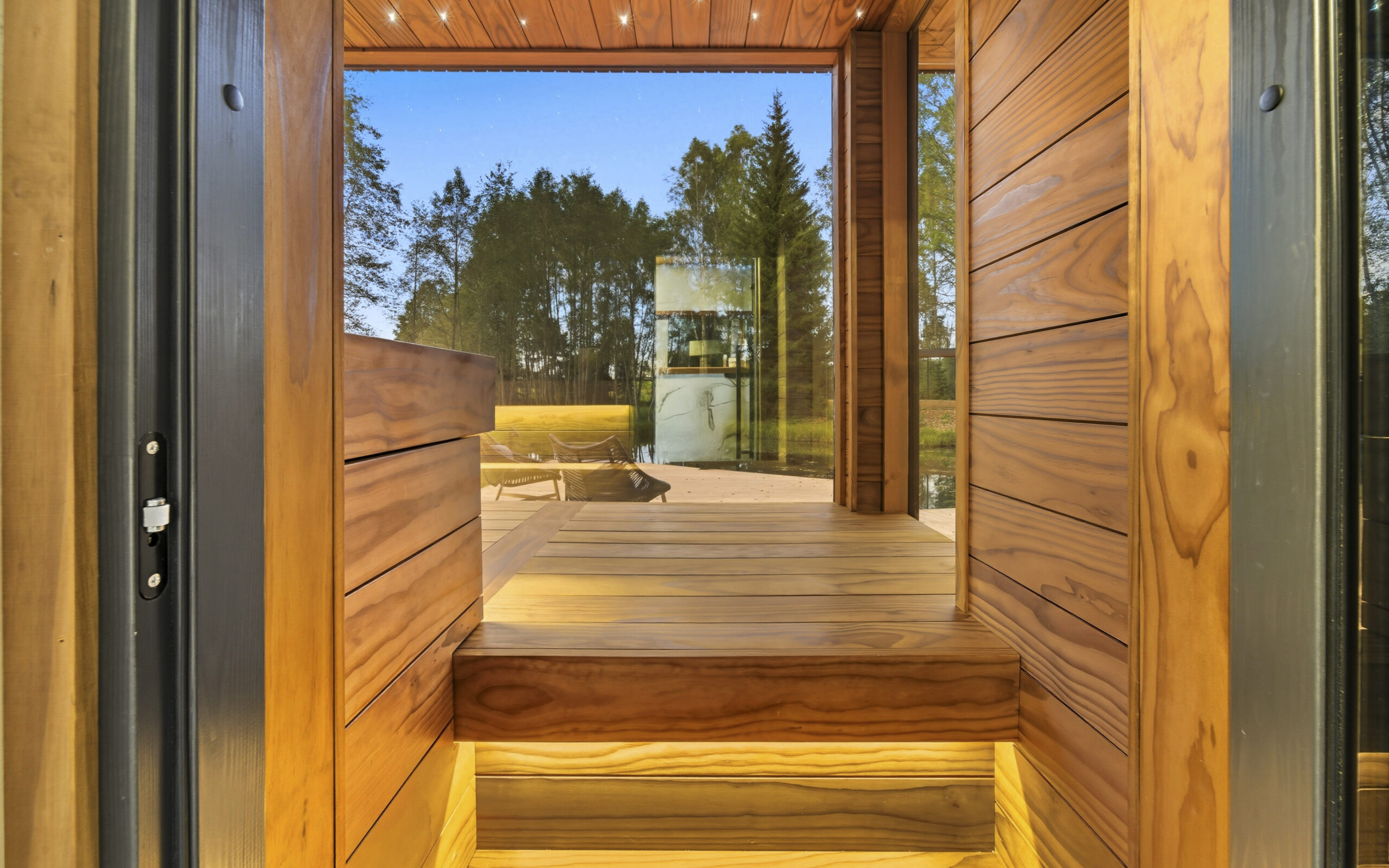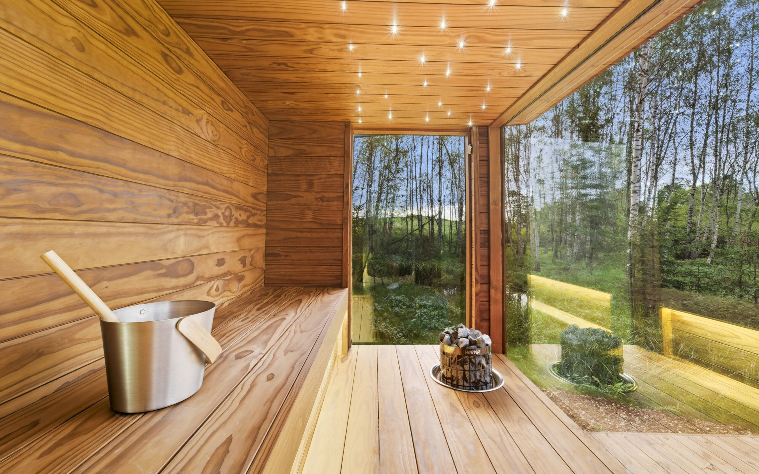 Leil soojendab lihaseid ja puhastab mõtted, samal ajal kui väljast avanev vaade loodusele ja tiigile lisab kogemusele erilise rahu. Pärast kuuma leili saad end värskendada jahedas õhus või nautida tiigiäärset vaikust terrassil.