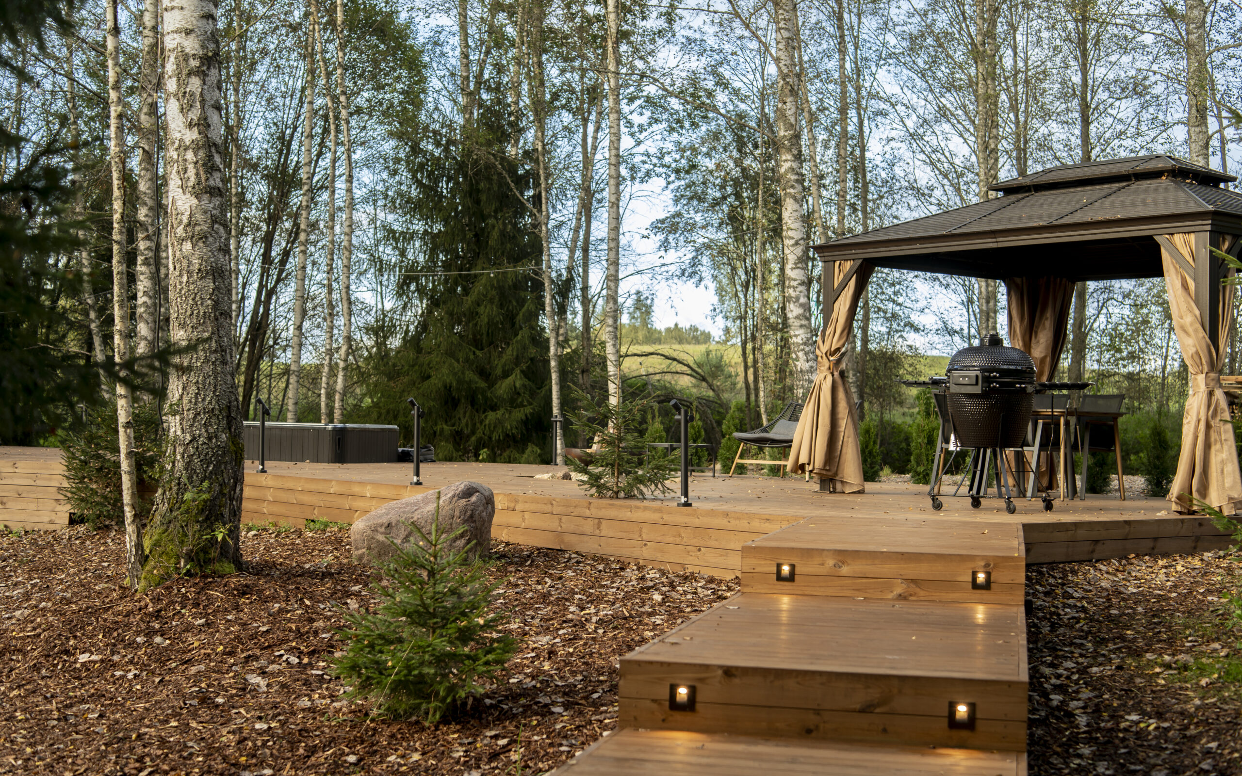 Suur terrass kutsub nautima päikesetõusu koos tassikese kohviga või veetma hubaseid õhtuid sõprade ja pere seltsis. Looduse hääled ja värske õhk loovad rahustava atmosfääri, mis aitab tõeliselt välja puhata nii kehal kui vaimul.